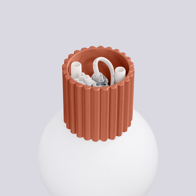 HALO bewijst dat een minimalistische vorm niet saai hoeft te zijn. De karakteristieke groeven van de behuizing introduceren een subtiel, decoratief detail dat de aandacht trekt. De matte armatuur en de melkachtige bol vormen een harmonieus duo, geschikt voor zowel moderne, Scandinavische als meer artistieke of retro-opstellingen.