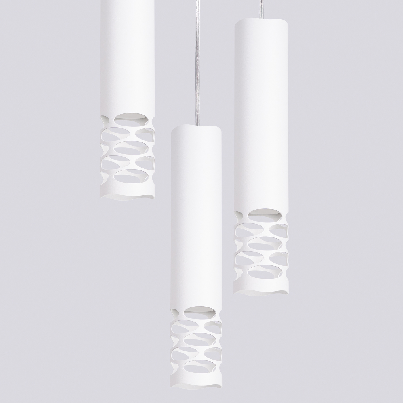 LIRO is een minimalistische lamp met een opvallende vorm en decoratieve golvende uitsparingen. De unieke vorm geeft de lamp een licht gevoel, terwijl het licht dat door de onderste openingen ontsnapt een zacht visueel effect creëert. Verkrijgbaar als hanglamp (enkel, dubbel, drievoudig) en als wandmodel met arm.