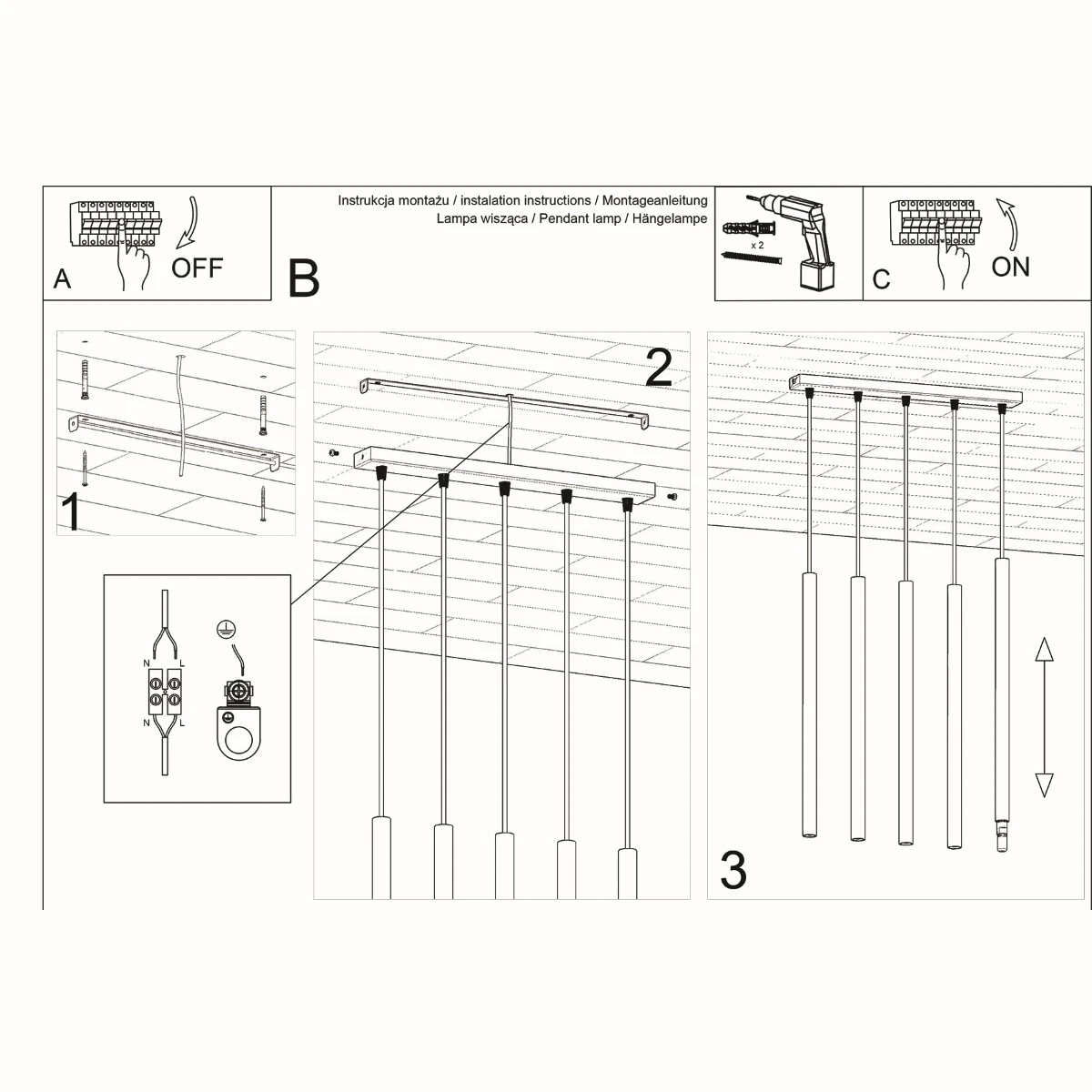 Hang de PASTELO lamp op de perfecte hoogte. Of je nu een hoge trap wilt verlichten of een hanglamp voor de woonkamer nodig hebt, door de verstelbare kabellengte bereik je het perfecte effect.