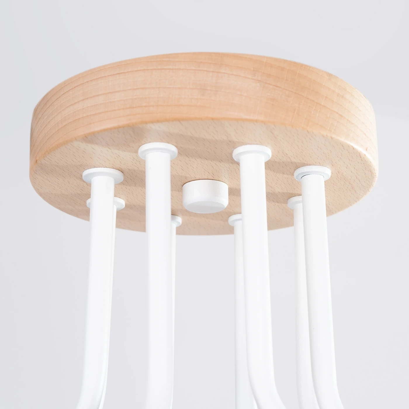 De TIMBO lamp is een modern voorstel voor wie een unieke combinatie op prijs stelt van elegantie en functionaliteit. Verkrijgbaar als kroonluchter met zes of acht armen, maar ook als wandlampversie, biedt hij niet alleen een verscheidenheid aan lichtbronnen, maar ook keuze uit twee elegante kleuren: tijdloos zwart en subtiel wit. Hoogwaardige houten en metalen elementen benadrukken het verfijnde design, dat perfect past in elk interieur.