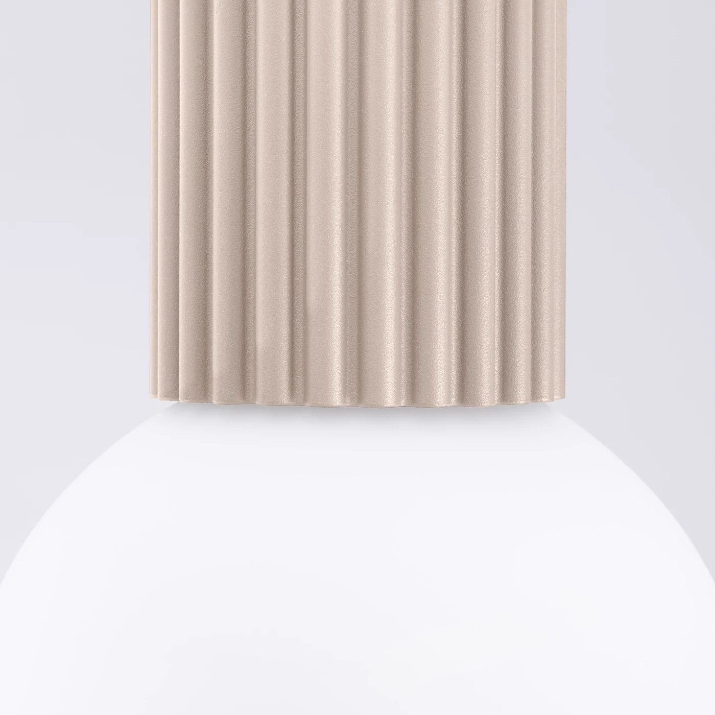 HALO bewijst dat een minimalistische vorm niet saai hoeft te zijn. De karakteristieke groeven van de behuizing introduceren een subtiel, decoratief detail dat de aandacht trekt. De matte armatuur en de melkachtige bol vormen een harmonieus duo, geschikt voor zowel moderne, Scandinavische als meer artistieke of retro-opstellingen.