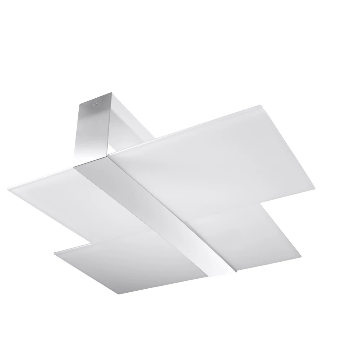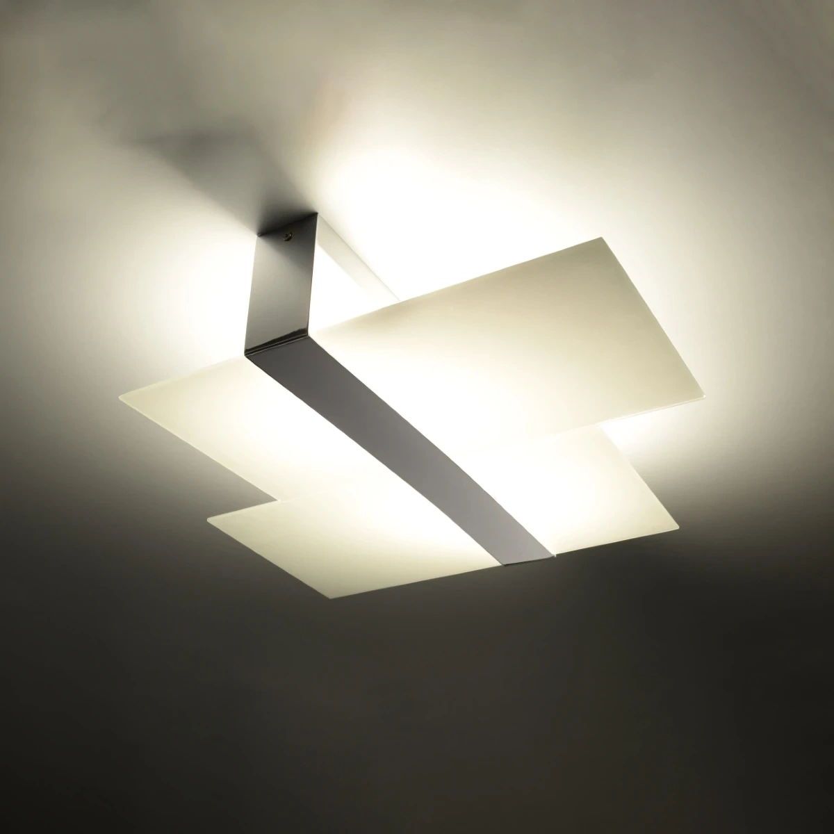 Een functionele plafondlamp van wit glas is een voorstel voor moderne, elegante interieurs. De combinatie van wit en staal is een interessante, soms rauwe combinatie. Deze indruk verdwijnt echter wanneer de lamp wordt ingeschakeld: het witte glas accentueert het licht prachtig en verrukt u met zijn uiterlijk.