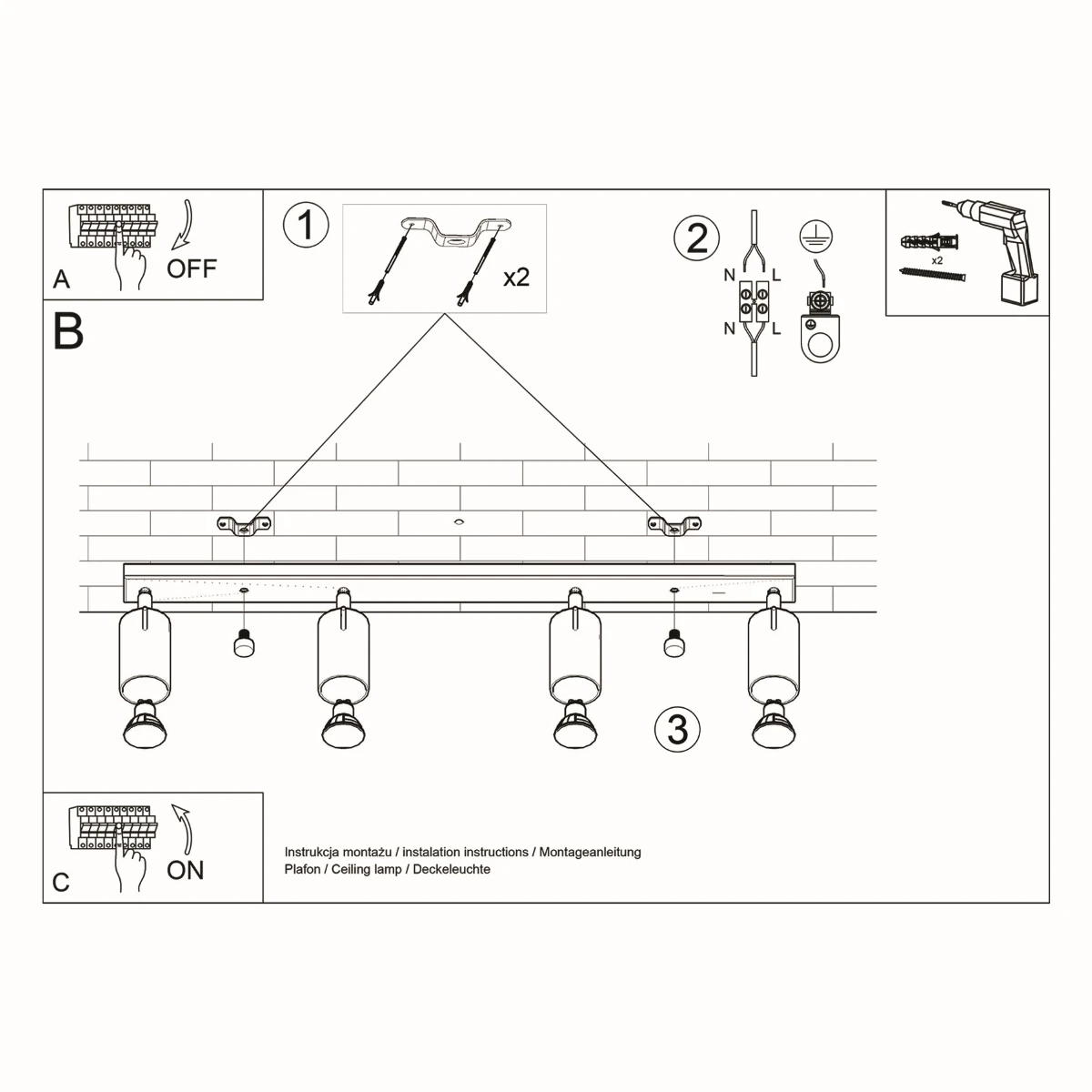 De plafondlamp met 4 lampen is verkrijgbaar in 4 klassieke kleurversies: wit, zwart, grijs en chroom. Universele kleuren passen perfect in interieurs in elke stijl: van rauwe loft tot warme rustieke sfeer.