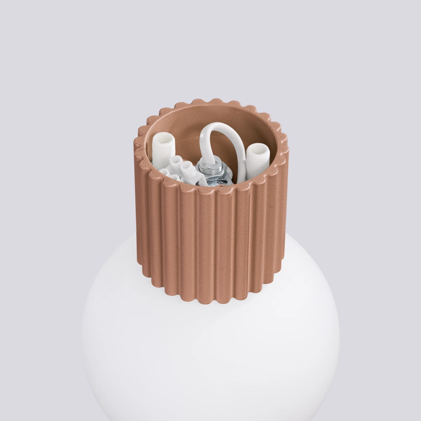 HALO bewijst dat een minimalistische vorm niet saai hoeft te zijn. De karakteristieke groeven van de behuizing introduceren een subtiel, decoratief detail dat de aandacht trekt. De matte armatuur en de melkachtige bol vormen een harmonieus duo, geschikt voor zowel moderne, Scandinavische als meer artistieke of retro-opstellingen.