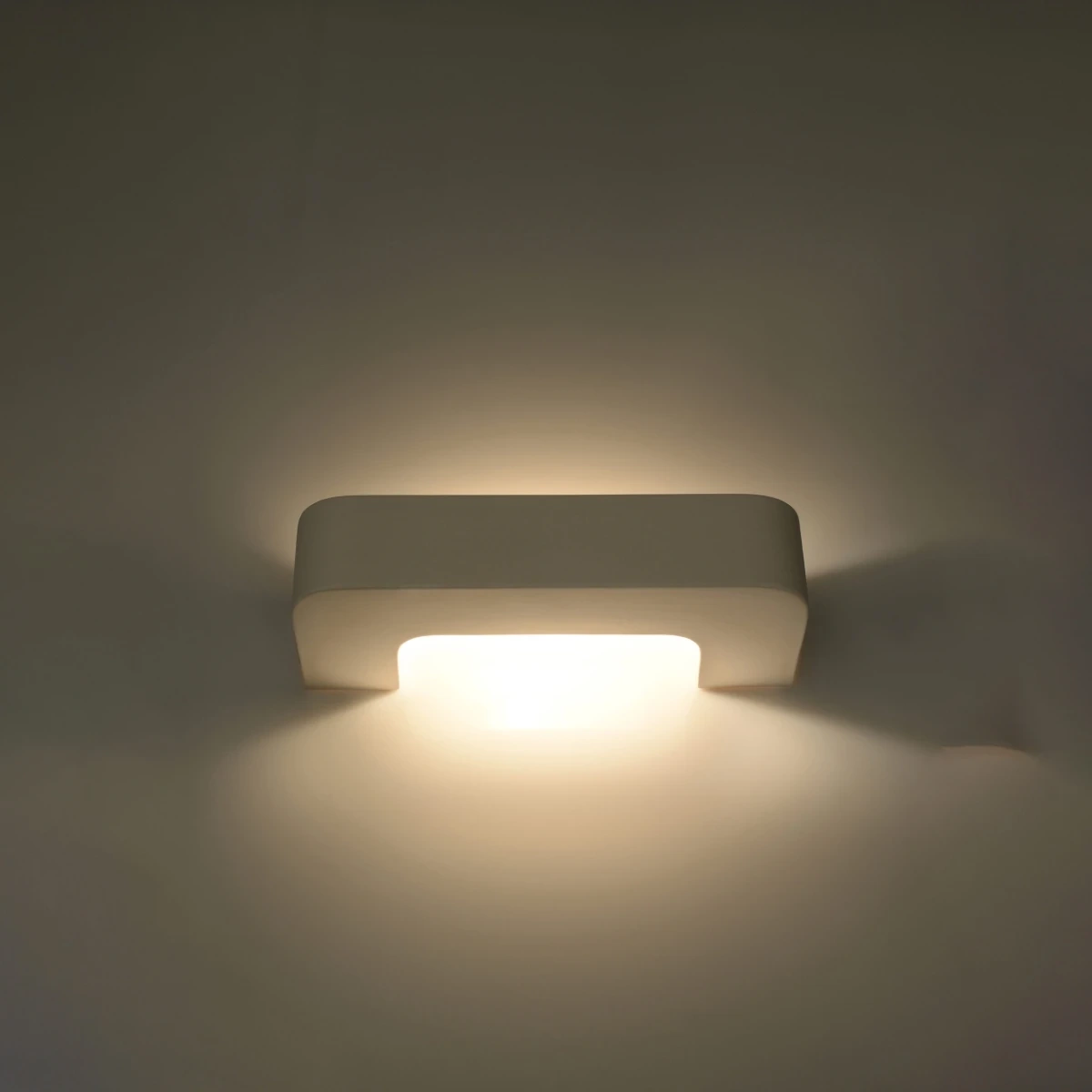 Het licht in de wandlamp verspreidt zich op en neer en de behuizing van wit, mat keramiek gecombineerd met het verlichte oppervlak creëert een prachtige visuele compositie. De wandlamp ziet er geweldig uit in moderne interieurs en verrukt door zijn lichtheid en nette vorm.