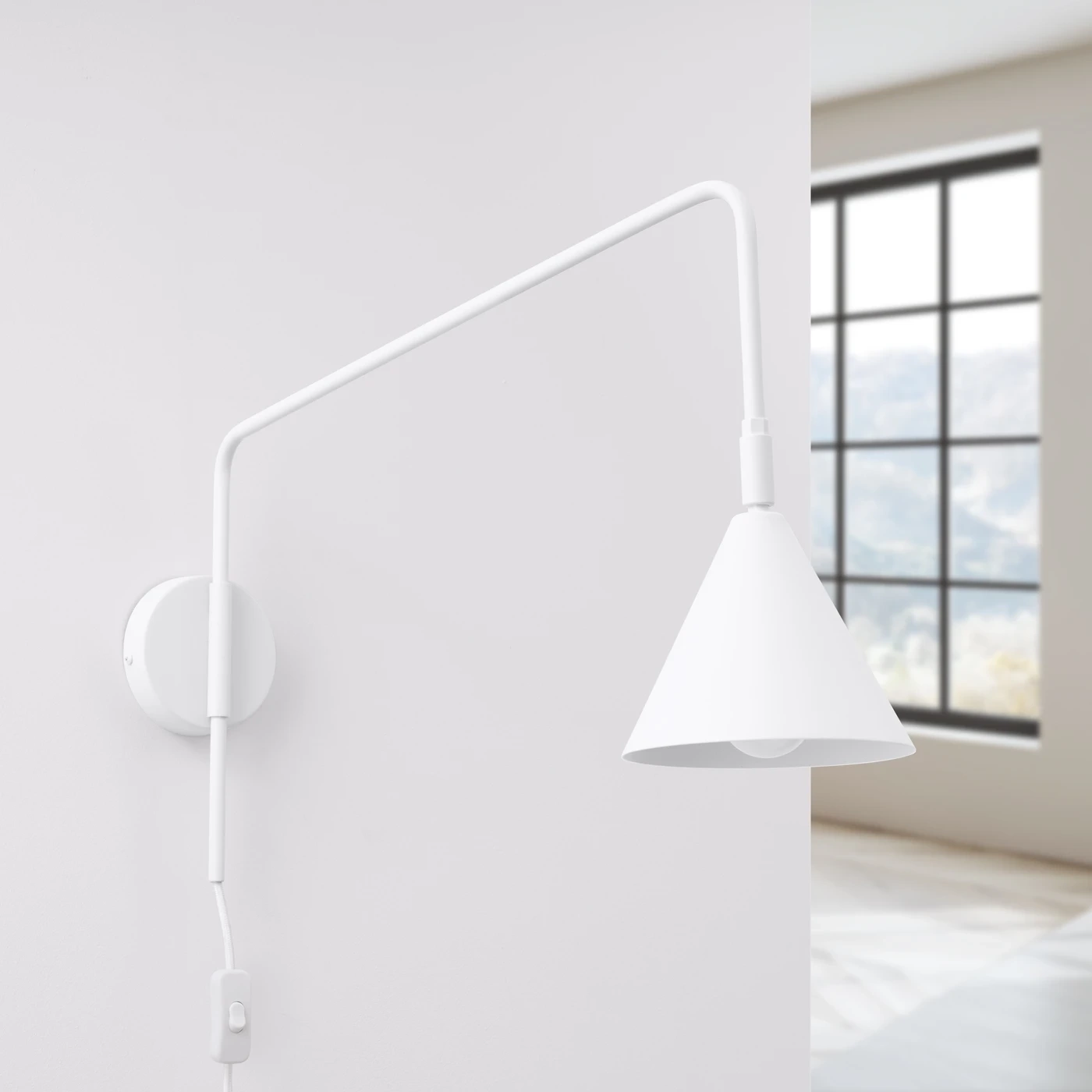 NOX is een moderne wandlamp met een bijzonder lichte vorm en een uitgesproken karakter. Een eenvoudige, metalen arm die eindigt met een geometrische, conische kap creëert een intrigerende compositie die geweldig zal werken in moderne, Scandinavische of industriële arrangementen.
