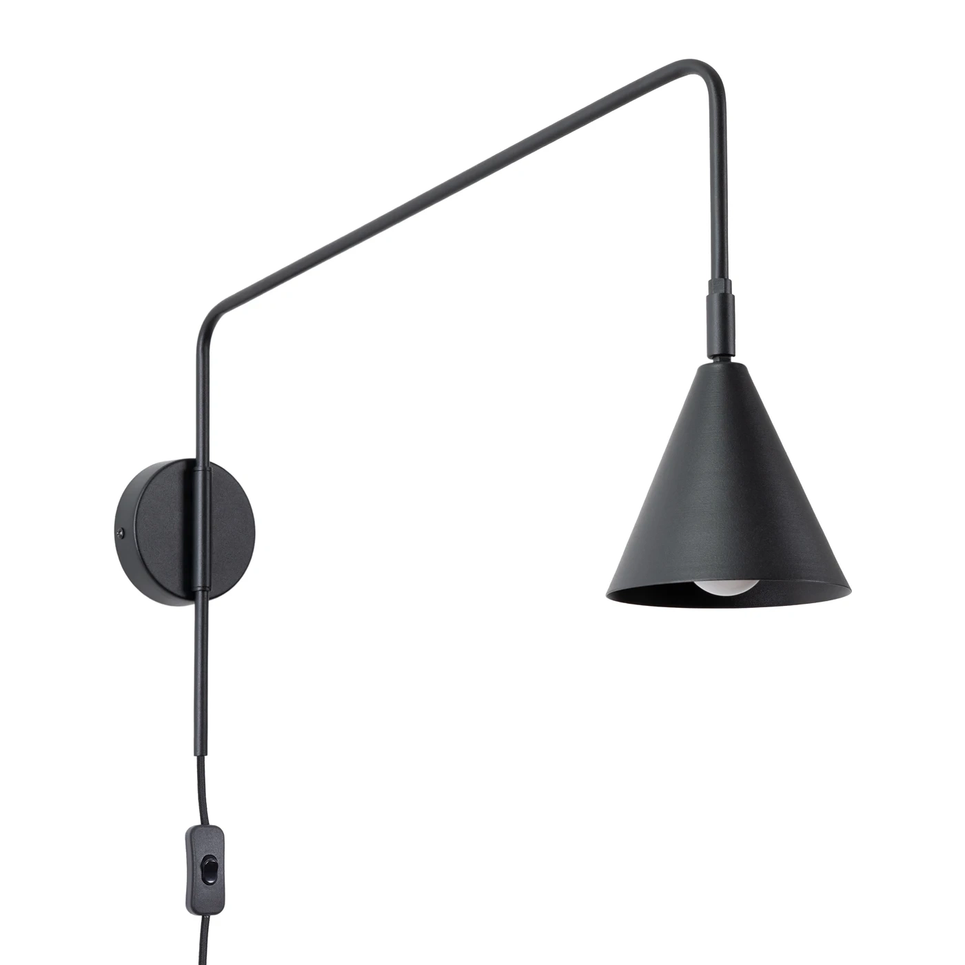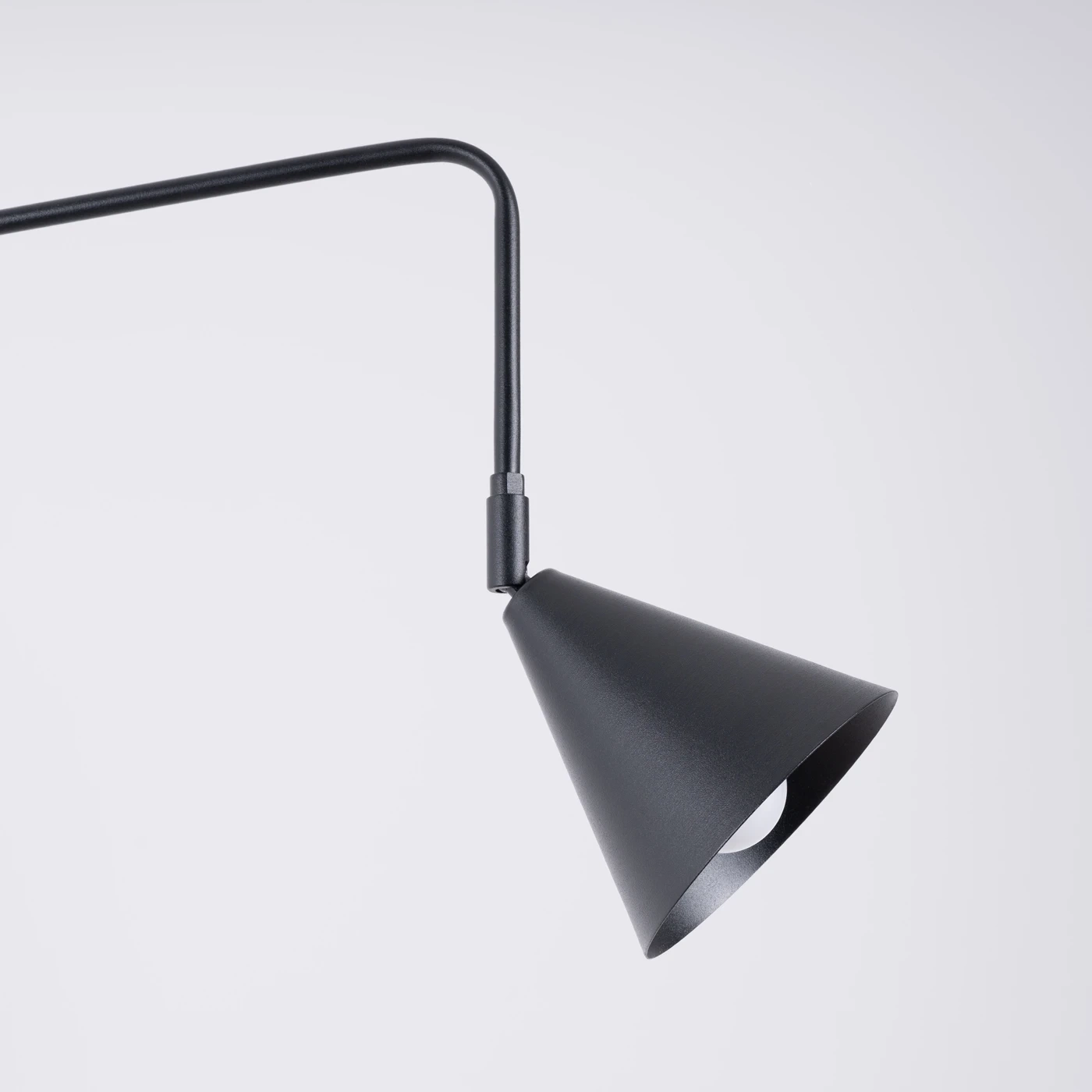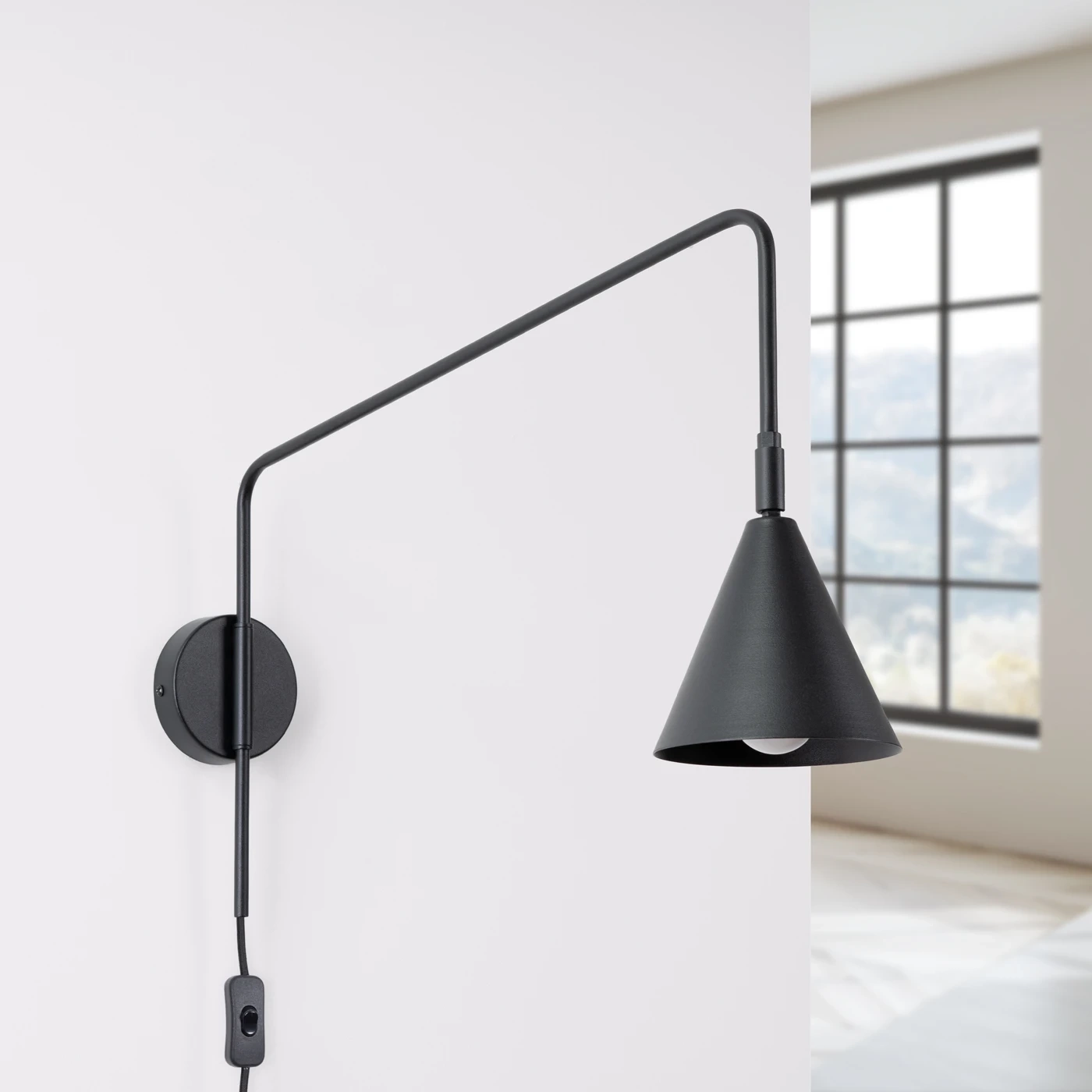 NOX is een moderne wandkandelaar met een uitzonderlijk lichte vorm en een uitgesproken karakter. De eenvoudige, metalen arm die uitmondt in een geometrische, conische tint creëert een intrigerende compositie die goed tot zijn recht komt in moderne, Scandinavische of industriële arrangementen.